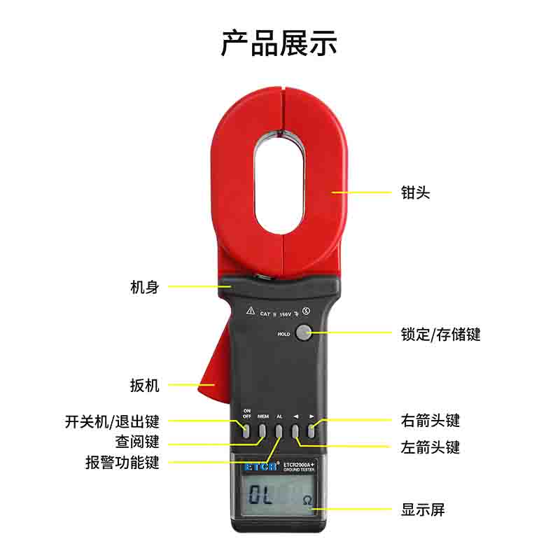 ETCR2000A+鉗形接地電阻儀能測(cè)量出用傳統(tǒng)方法無法測(cè)量的接地故障,能應(yīng)用于傳統(tǒng)方法無法測(cè)量的場(chǎng)合,因?yàn)殂Q形接地電阻儀測(cè)量的是接地體電阻和接地引線電阻的綜合值。