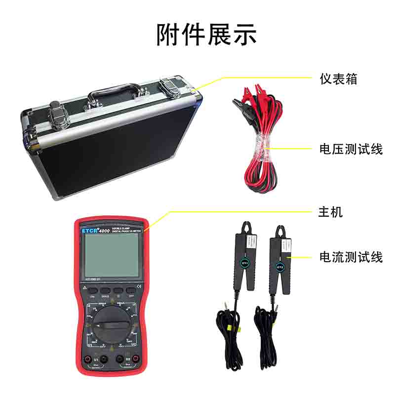 | ETCR4000A智能型雙鉗數字相位伏安表 | Φ8mm | 0~360° | 0.00V~600V | 0.00A~20A | 0.0W~12kW |