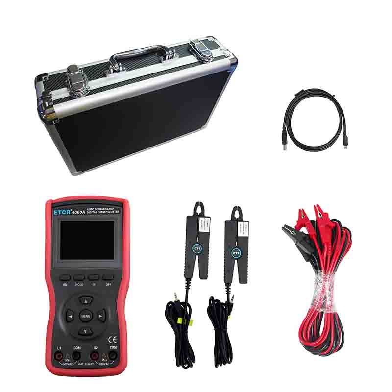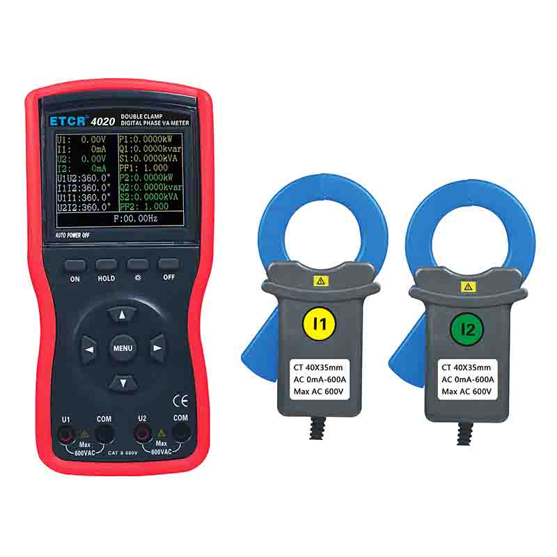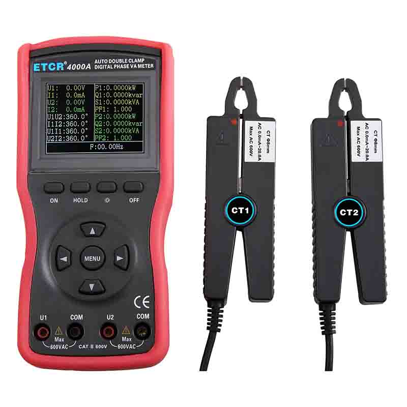 ETCR4000A智能型雙鉗數(shù)字相位伏安表又稱(chēng)單相相位伏安表、數(shù)字相位伏安表、伏安相位儀、相位測(cè)量?jī)x,用于測(cè)量?jī)陕方涣麟妷?、電流、電壓間相位、電流間相位、電壓電流間相位、頻率、相序、有功功率、無(wú)功功率、視在功率、功率因數(shù)等,判別變壓器接線組別、感性、容性電路,測(cè)試二次回路和母差保護(hù)系統(tǒng),讀出差動(dòng)保護(hù)各組CT之間的相位關(guān)系,檢查電度表的接線正確與否,檢修線路設(shè)備等,為用電檢查人員提供一種安全、準(zhǔn)確、便捷的新型電力儀表。尤其適用于電能計(jì)費(fèi)系統(tǒng)及繼電保護(hù)系統(tǒng),其供電營(yíng)銷(xiāo)部門(mén)的電能計(jì)量、用電檢查、電力稽查,生技部門(mén)的裝表接電 、繼電保護(hù)、差動(dòng)檢測(cè)、啟動(dòng)試驗(yàn)、變電檢修,或電力實(shí)訓(xùn)、技能比武等。