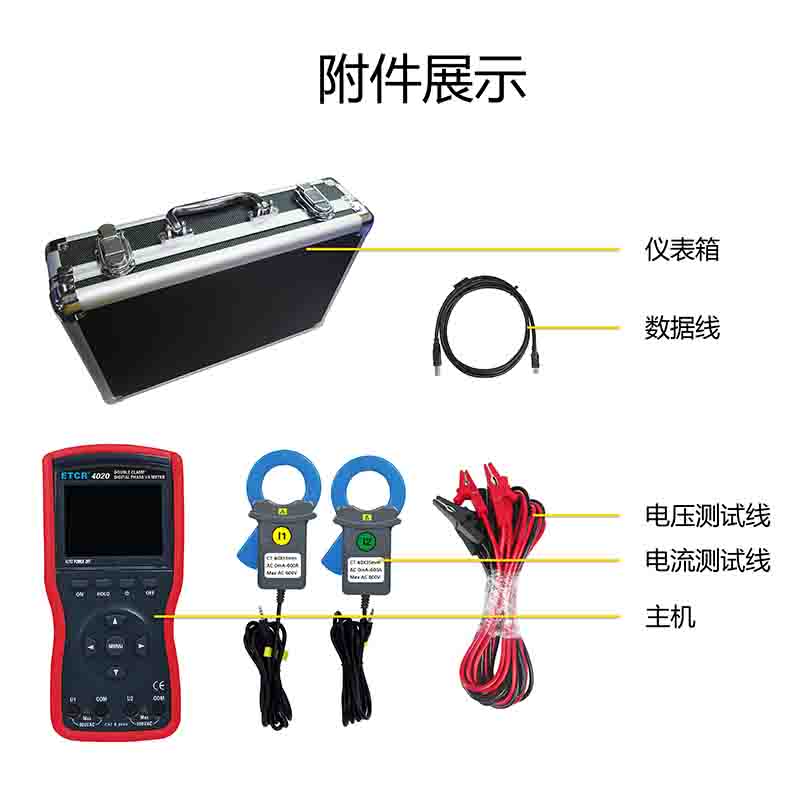 | ETCR4000數(shù)字雙鉗相位伏安表 | Φ8mm | 0~360° | 0.00V~600V | 0.00A~20.0A | -- |