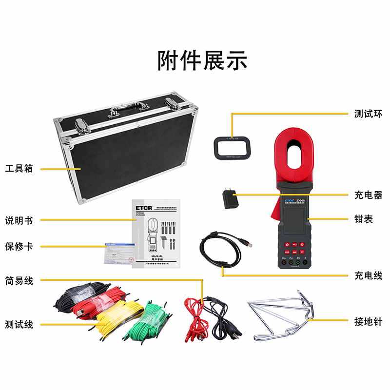 | 測試線 | 4條:紅色20m,黑色20m,黃色10m,綠色10m各1條 |