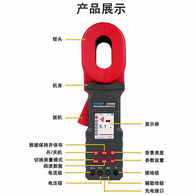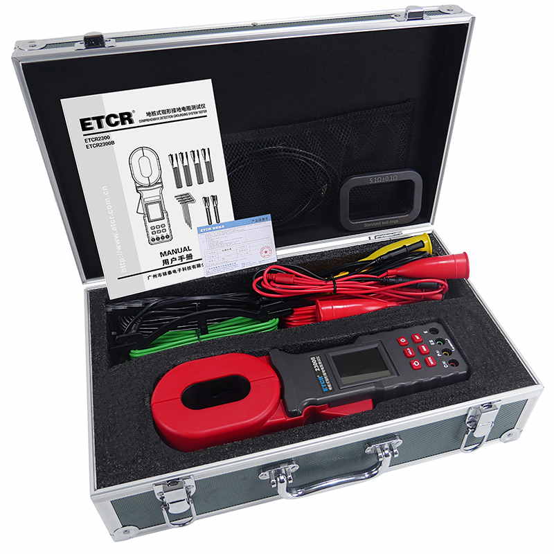 ETCR2300B地樁式鉗形接地電阻表又稱地樁式鉗形接地電阻表、地樁式鉗形表,用于現(xiàn)場測量接地電阻、土壤電阻率、接地電流、接地電壓。儀表具有鉗表法、二線法、三線法、四線法、選擇法等各種測量方法,儀表導(dǎo)入FFT(快速傅立葉變換)技術(shù)、AFC(自動頻率控制)技術(shù),具有獨特的抗干擾能力和環(huán)境適應(yīng)能力,重復(fù)測試一致性強,確保測量的高精度、高穩(wěn)定性和高可靠性。