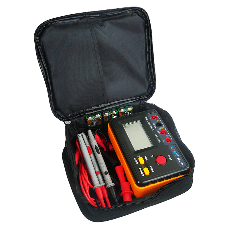 ETCR3440A絕緣電阻表是一款數(shù)字式絕緣電阻測試儀。其準(zhǔn)確度高、操作簡單可靠、使用方便。根據(jù)不同機(jī)型,輸出測試電壓500V/1000V/2500V可切換。普通絕緣電阻表不能測量自身輸出的高壓,在絕緣電阻表輸出高壓不符合額定值時(shí),用戶不容易發(fā)現(xiàn),以至有時(shí)測量結(jié)果偏差過大,造成安全隱患,它可適時(shí)監(jiān)測輸出高壓,用戶在任何時(shí)候都能觀察到儀表實(shí)際輸出的測量電壓,有效避免因輸出電壓不符合額定值要求而造成的誤判。儀表測量范圍最高可達(dá)到40GΩ,可根據(jù)需要設(shè)置測量時(shí)間,測量完畢后或在測量中按任一按鍵都會自動保持測量結(jié)果。本產(chǎn)品適用于測量變壓器、電機(jī)、電纜、開關(guān)、電器等各種電氣設(shè)備及絕緣材料的絕緣電阻,對各種電氣設(shè)備進(jìn)行保養(yǎng)維修、試驗(yàn)及檢定。它結(jié)構(gòu)精巧,攜帶方便,是您理想的電工、電子測試儀表。