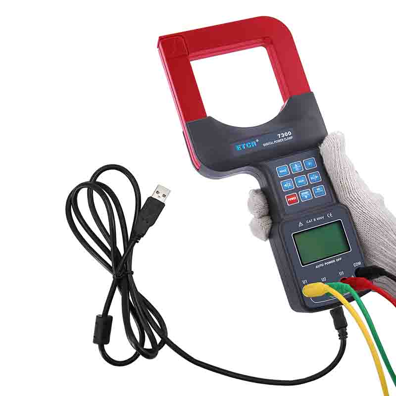 ETCR7300大口徑三相鉗形功率表又名鉗形功率計、超大口徑鉗形功率表、三相鉗形功率表,用于現(xiàn)場測量三相交流電壓、電流、漏電流、電壓間相位、電壓電流間相位、頻率、相序、電能、有功功率、無功功率、視在功率、功率因數(shù)、總功率等電能參數(shù)。還能用于判別變壓器接線組別、感性、容性電路,讀出差動保護各組CT之間的相位關(guān)系,檢查電度表的接線正確與否,檢修線路設(shè)備等,為用電檢查人員提供一種安全、準(zhǔn)確、便捷的新型電力儀表。