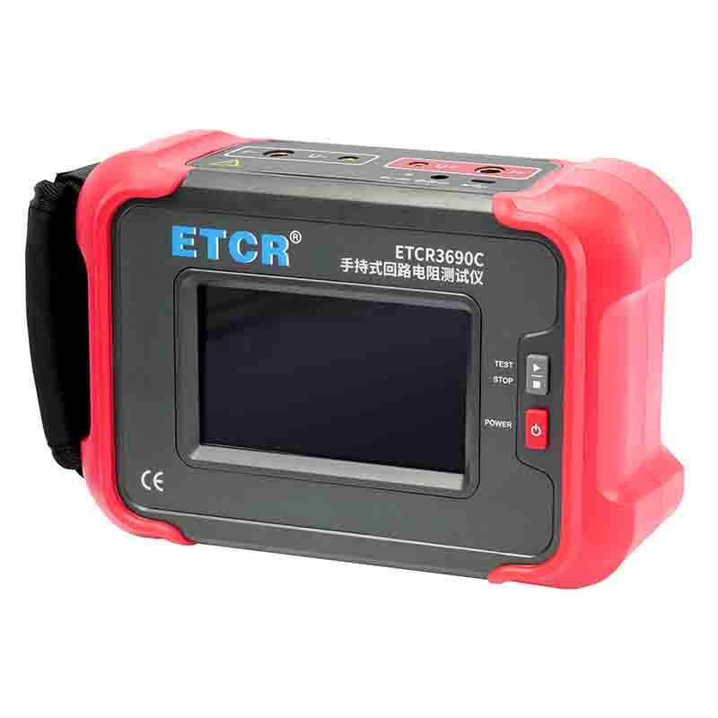 ETCR3690C手持式回路電阻測試儀根據(jù)人體工程學(xué)原理設(shè)計,手感舒適,特殊設(shè)計的機體結(jié)構(gòu)具有絕緣、封閉,防漏電、防風(fēng)沙,減震防護等功能。儀表采用高亮度5寸觸摸彩屏,操作簡易快速功能直達,字符清晰明亮,中英文顯示界面。儀表有多檔測試電流可選,儀表顯示當前檔位的測試范圍,用戶可自行選擇電流檔位及測試時間,滿足用戶不同場合的要求。