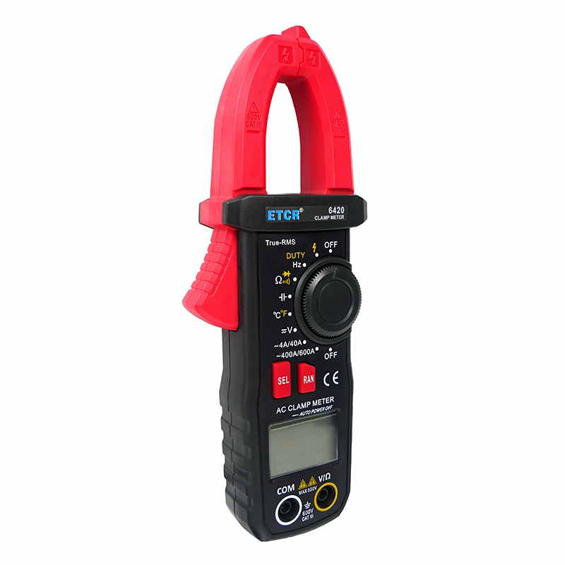 ETCR6420鉗形萬用表又稱多功能鉗形電流表,是一種便攜式鉗形數(shù)字多用表,可測(cè)量直流電壓、交流電壓電流真有效值、電阻、頻率、通斷測(cè)試、溫度、二極管正向壓降等參數(shù),電容測(cè)量量程擴(kuò)大到10mF且測(cè)量大電容速度快。該儀表結(jié)構(gòu)小巧、操作容易、攜帶方便,是電氣測(cè)量之理想工具。為用電檢查人員提供一種安全、準(zhǔn)確、便捷的新型電力儀表,是電工安全檢測(cè)的必備工具。