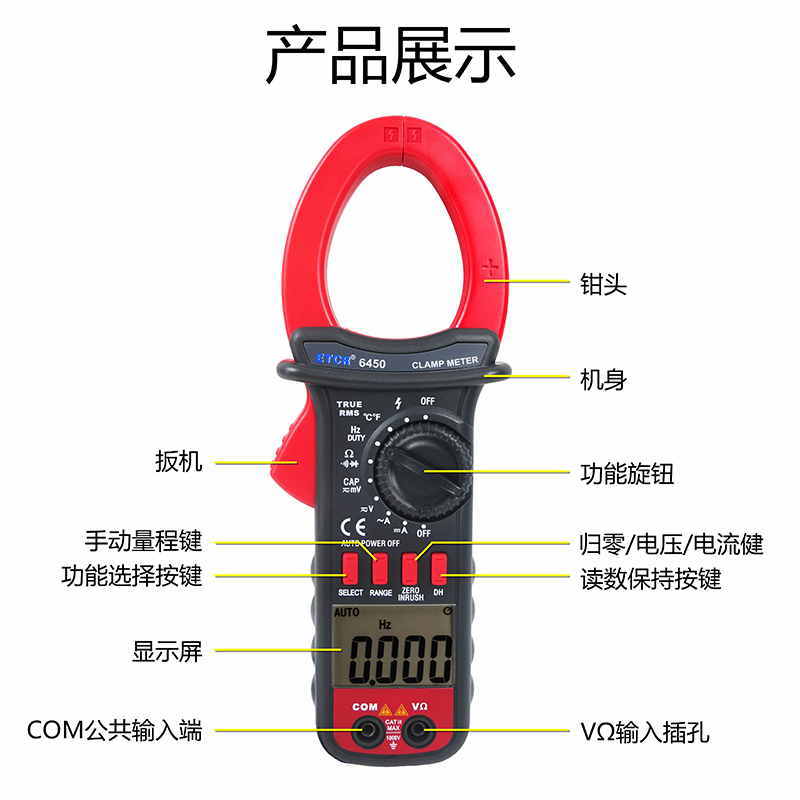 ETCR6450鉗形萬用表可用于各類大專院校、冶煉、通訊、制造、石油、國防、電力、電子、電力設(shè)備的檢測、維護和維修的理想工具。為用電檢查人員提供一種安全、準確、便捷的新型電力儀表,是電工安全檢測的必備工具。