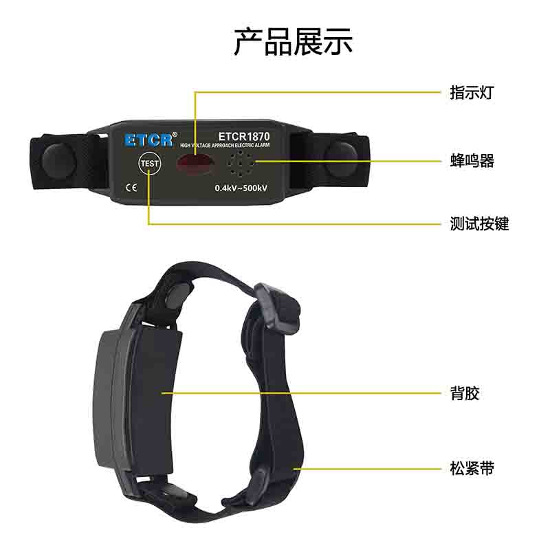 ETCR1870手臂式近電報(bào)警器又稱穿戴式近電報(bào)警器,為近電作業(yè)人員提供一款安全、實(shí)用、便捷的新型高壓報(bào)警裝置。帶電作業(yè)時,操作人員與帶電體的安全距離不能低于相關(guān)工作規(guī)程的要求。作業(yè)人員佩戴本報(bào)警器后,在接近高壓帶電體一定距離時,根據(jù)電壓等級相應(yīng)的安全距離,報(bào)警器發(fā)出聲光報(bào)警,提醒電氣工作人員注意安全,避免發(fā)生高壓觸電事故。