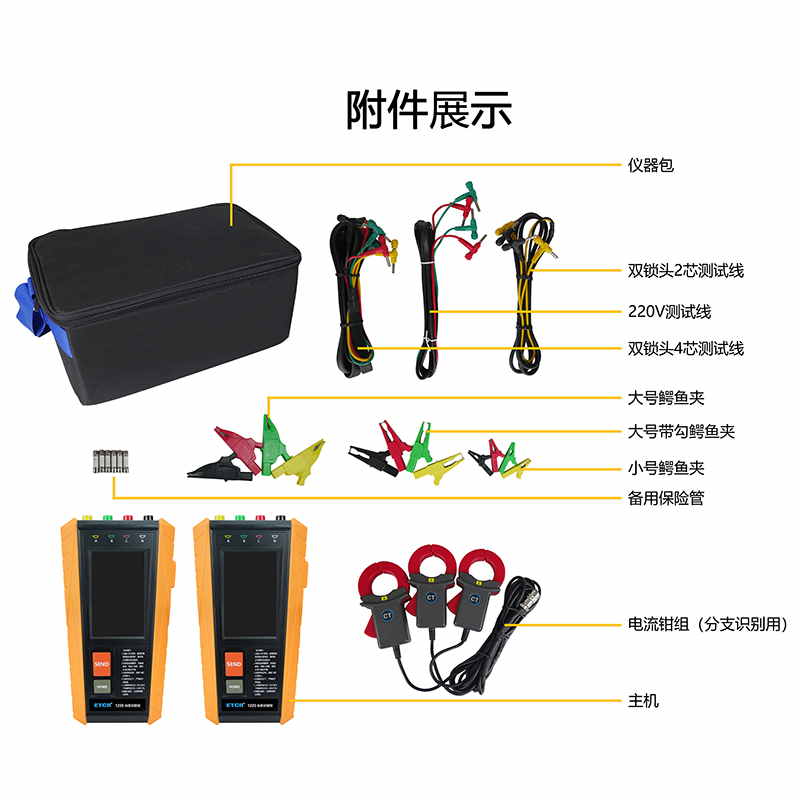 | 從機(jī)測試線 | 雙鎖頭2芯測試線(黃、黑)、220V測試線(紅、黑) |