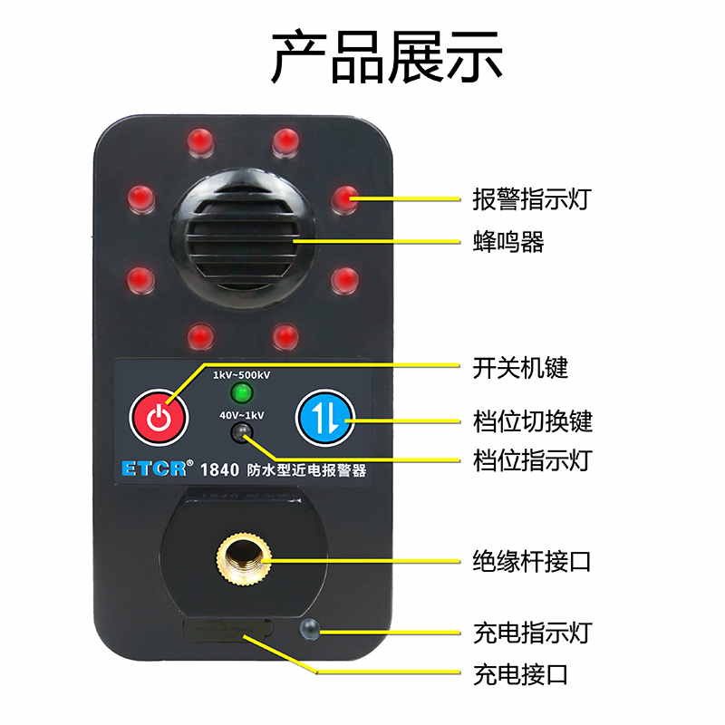 1、非接觸感應(yīng)技術(shù),全方位檢測空中電場,自動(dòng)觸發(fā)報(bào)警功能。