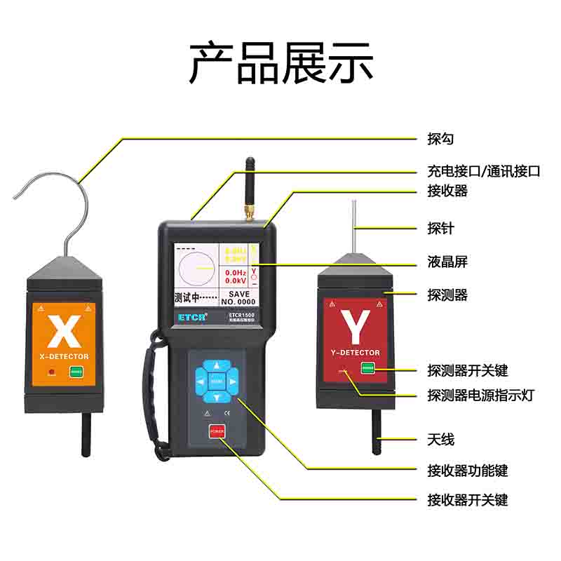 | ETCR1540無線中置柜核相儀 | 20m | AC 10kV/35kV | 0°~360° | 45.0Hz~65.0Hz | 200組 |