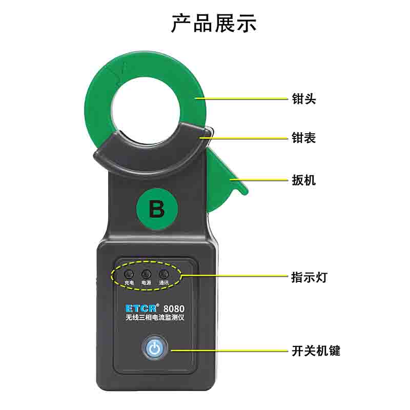 5.監(jiān)測(cè)儀采用鉗形結(jié)構(gòu)無(wú)需斷開(kāi)被測(cè)線(xiàn)路,測(cè)試安全快捷。