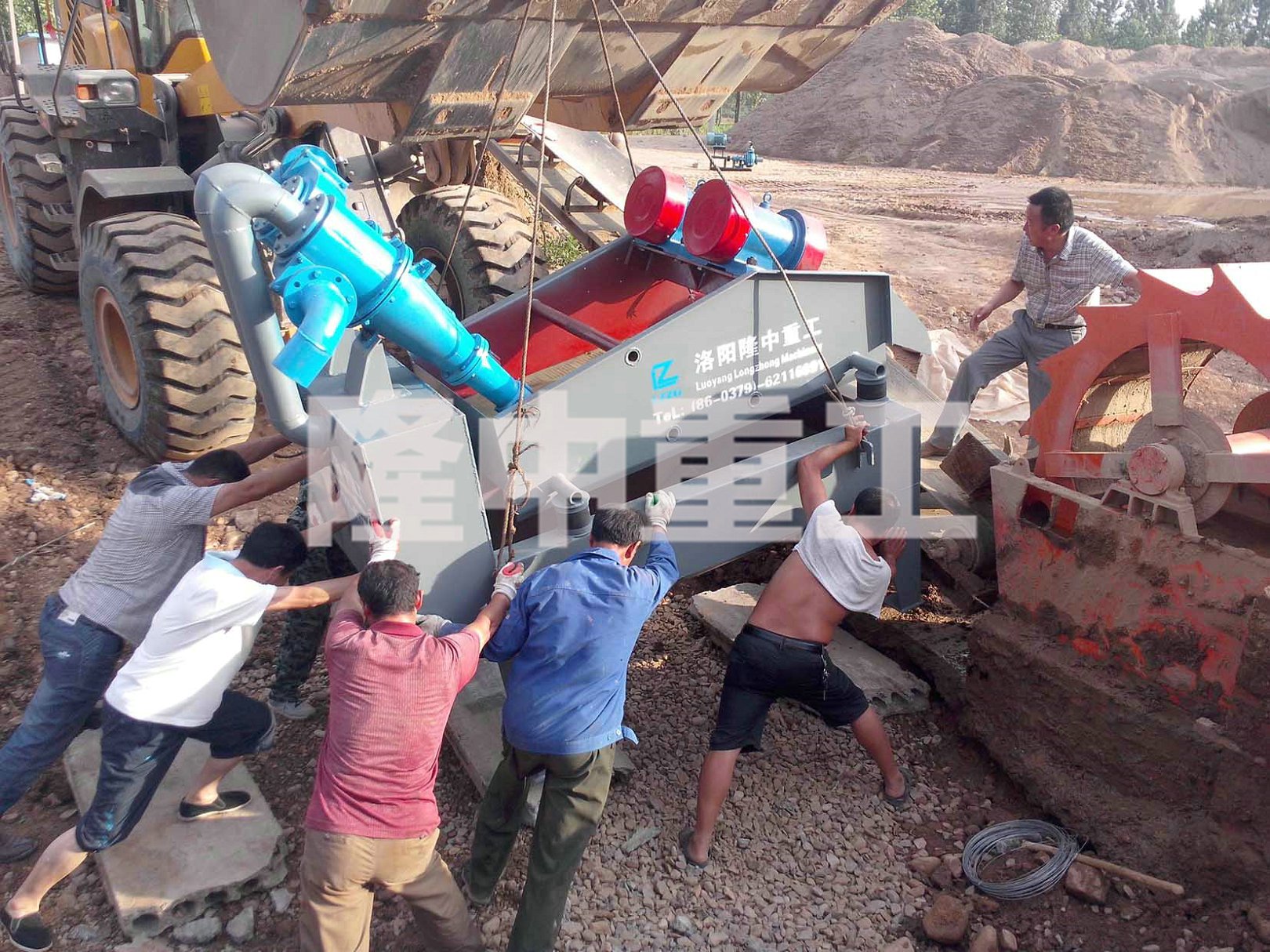 細(xì)砂回收機(jī)設(shè)備運(yùn)到現(xiàn)場后正在進(jìn)行安裝工作。細(xì)砂回收機(jī)雖然也不是什么很大的設(shè)備,但仍然較重,因此在安裝的過程中需要使用工程機(jī)械的輔助,通常情況下各砂石廠都有大型鏟車使