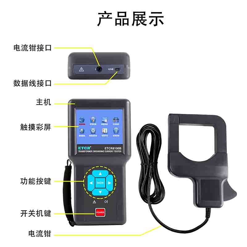 ETCR8100B變壓器鐵芯接地電流測試儀又稱變壓器鐵芯接地參數(shù)測試儀、接地電流測試儀,用于測試電力系統(tǒng)中變壓器鐵芯接地電流、漏電流。儀表由主機(jī)、電流鉗、監(jiān)控軟件、通訊線等組成。電力變壓器是電力系統(tǒng)中重要的電氣設(shè)備,運(yùn)行中一旦出現(xiàn)故障,將會對電力系統(tǒng)造成嚴(yán)重的后果。正常運(yùn)行的變壓器鐵芯是單點接地的,如有兩點或兩點以上同時接地,則鐵芯與大地之間將形成電流回路,最大電流可達(dá)幾十安培,將會造成鐵芯局部過熱甚至燒毀。本儀表能盡快發(fā)現(xiàn)變壓器潛伏性的故障,是保證變壓器安全運(yùn)行和正常維護(hù)的主要工具。儀表具有抗干擾能力,能適用于變壓器旁強(qiáng)磁場干擾環(huán)境下使用。主要適用于變電站、發(fā)電廠作為變壓器、電抗器等電氣設(shè)備的鐵芯與夾件的泄漏電流測試。也可用于電力、通信、氣象、鐵路、油田、建筑、計量、科研教學(xué)單位、工礦企業(yè)等領(lǐng)域線路或設(shè)備的電流、漏電流測試。