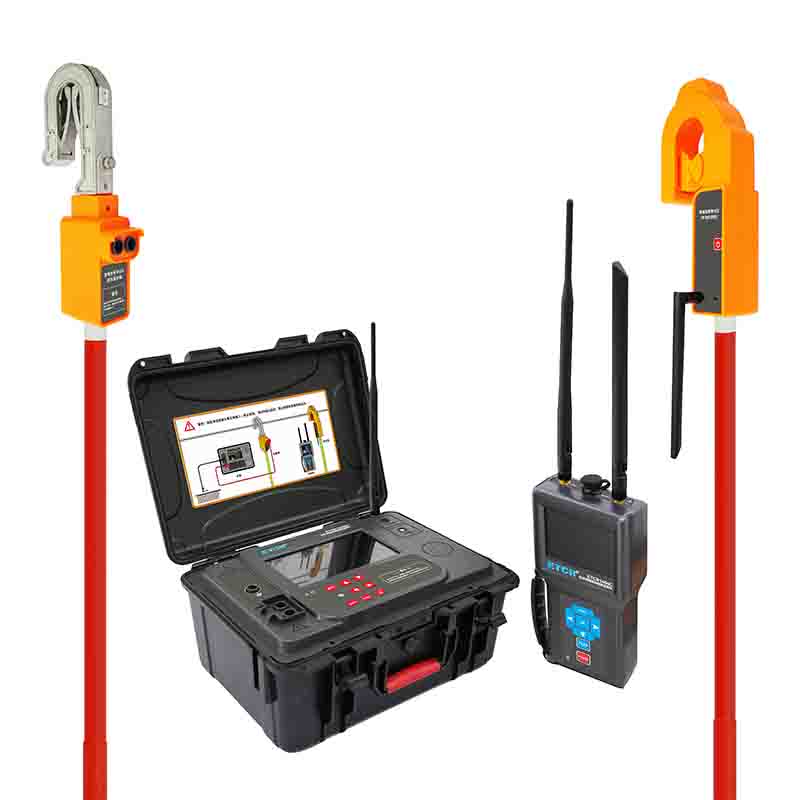 ETCR1400架空線路接地故障巡查儀,可進行多條線路的接地故障定位。在架空線路停運后,從線路一端開始逐段測試,由檢測鉗向線路施加低頻高壓信號并檢測左右兩側(cè)電流,通過分析左右側(cè)脈沖電流及阻抗,在主機上顯示接地故障點的方向(黃色方向或紅色方向)。檢測鉗有對應(yīng)的黃色端和紅色端,沿著故障點指示的方向逐段測試,在故障點前,測試結(jié)果顯示故障點在其后方,在故障點后,檢測結(jié)果顯示故障點在其前方,從而逐段逼近故障點,確定故障位置。