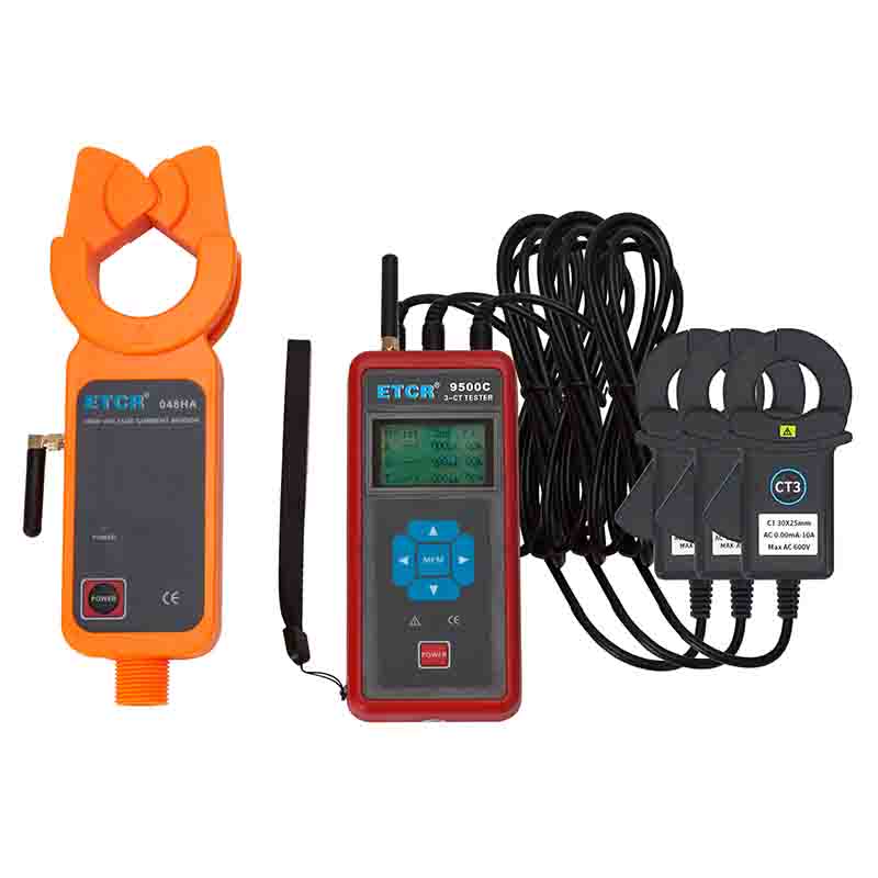 ETCR9500C-030無線高壓CT變比測試儀又稱互感器電流變比測試儀、互感器比差測試儀、電流互感器變比測試儀,用于35kV以下電流互感器的一次電流、二次電流大小、變比,相別、極性判斷。儀器采用3個二次低壓電流鉗(口徑25mm×30mm)同時測試低壓線路,可直接確定高壓端與低壓端的對應相位關系,無需多次鉗測。廣泛應用于變電站﹑發(fā)電廠﹑電力稽查部門、工礦企業(yè)以及檢測站﹑電工維修部門進行電流檢測、反竊電及野外電工作業(yè)等。